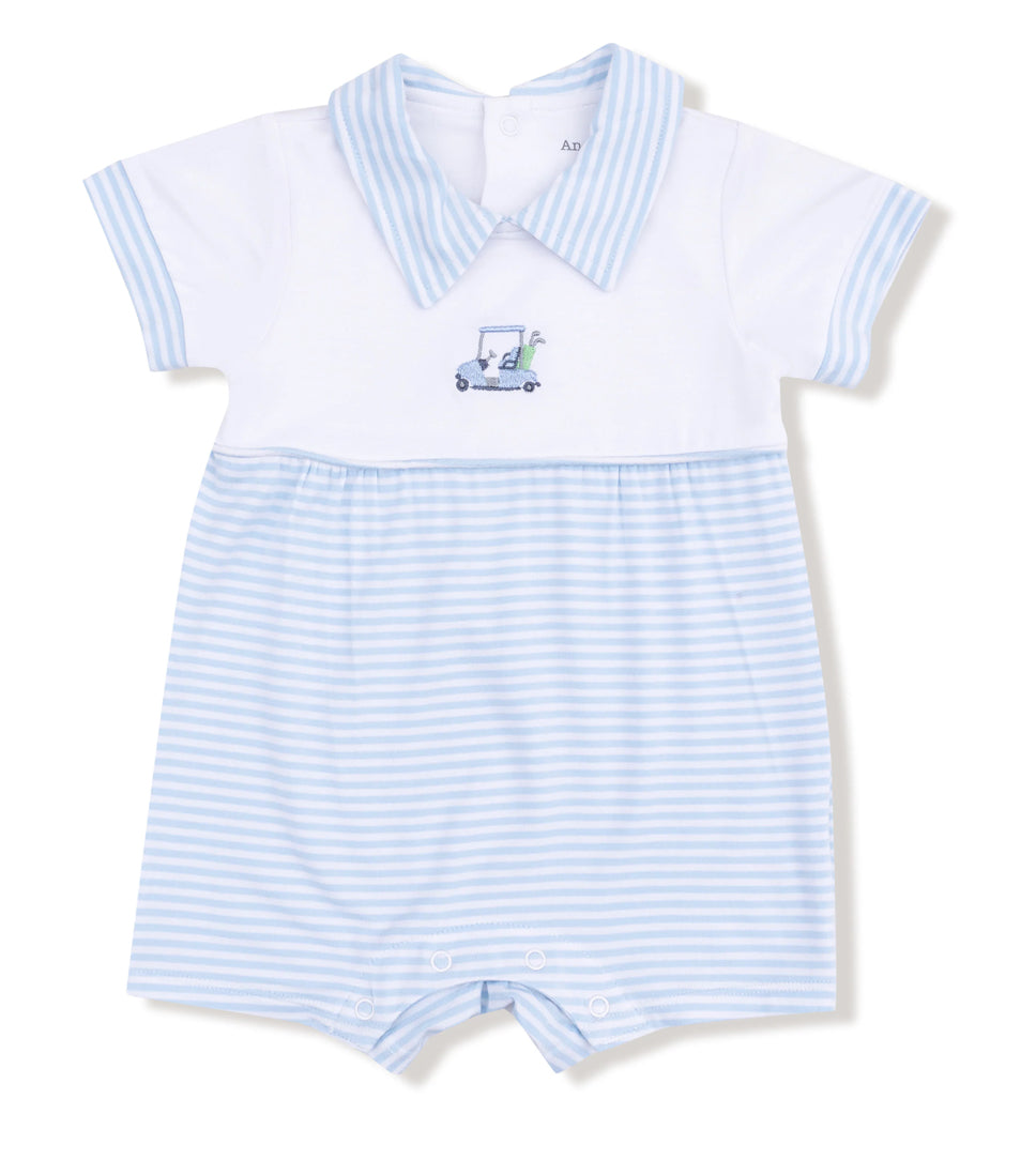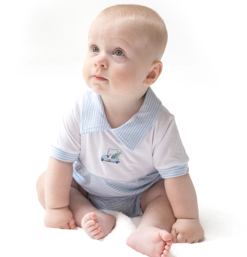 Baby Golf Carts - Blue Stripe Polo Shortie with Contrast