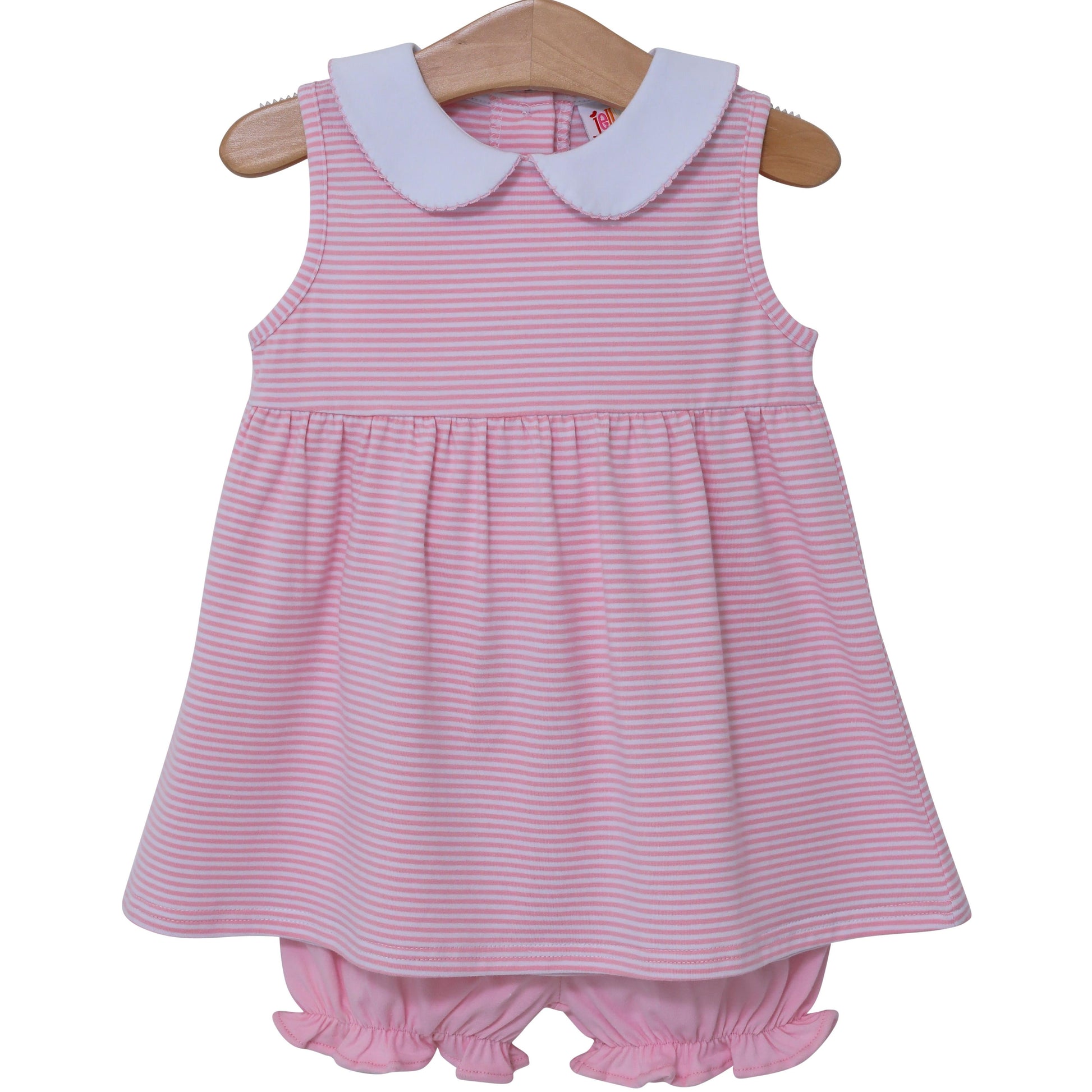 ** PRE- ORDER ** Charlotte Sleeveless Bloomer Set- Light Pink Stripe