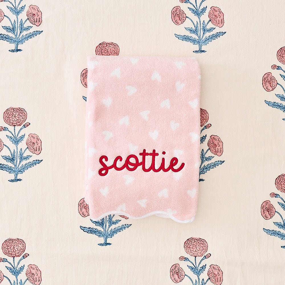 Patterned Scallop Bath Towel - Tossed Pink Hearts