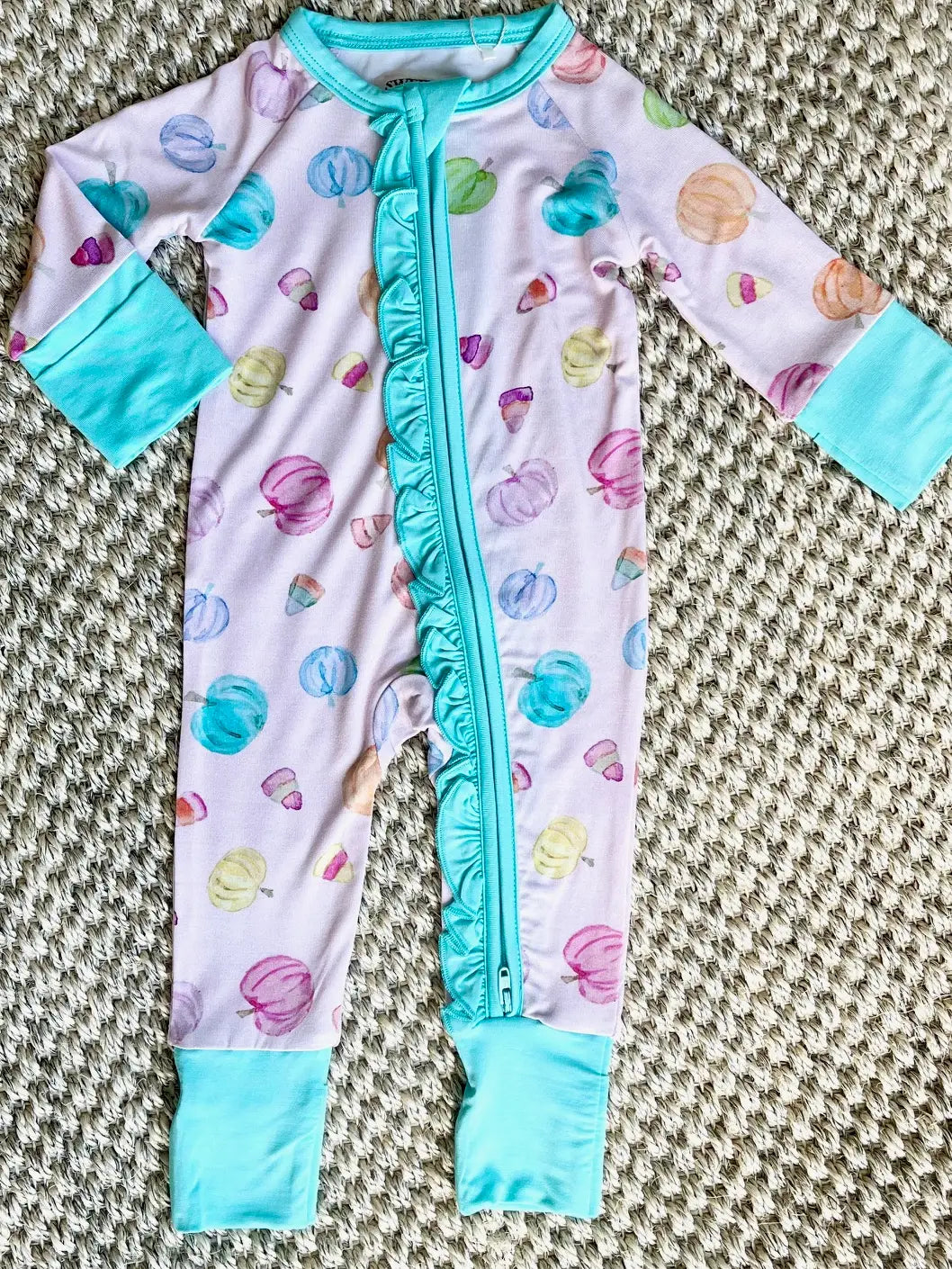 Pink Pumpkin Zipper Onesie W/Ruffle